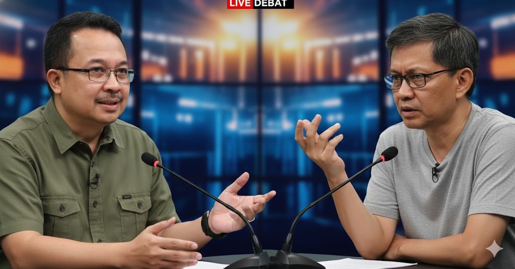 Ilustrasi AI Debat Rocky Gerung dan Rhenald Kasali