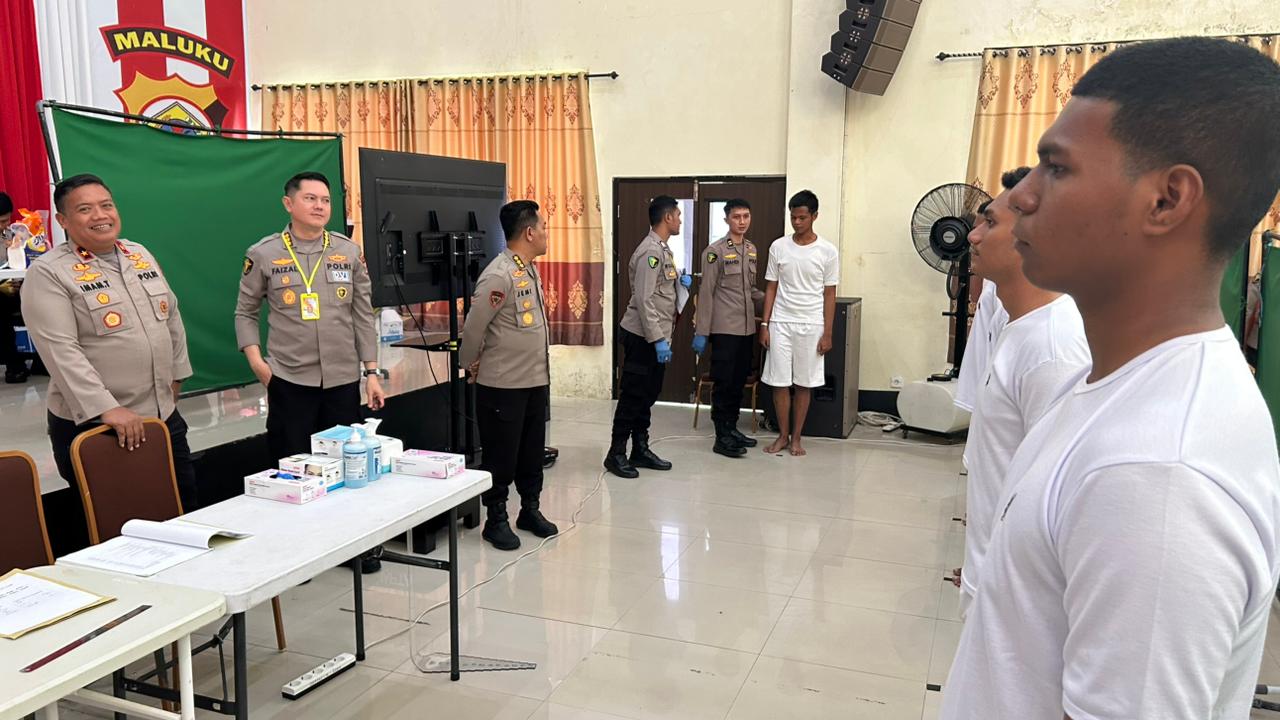 AMBONKITA.COM,– Wakapolda Maluku Brigjen Pol. Imam Thobroni meninjau langsung proses pemeriksaan kesehatan (rikkes) tahap I seleksi penerimaan Bintara Polri Tahun Anggaran 2026 di Gedung Faisal Heluth, SPN Polda Maluku, Selasa (14/4/2026).