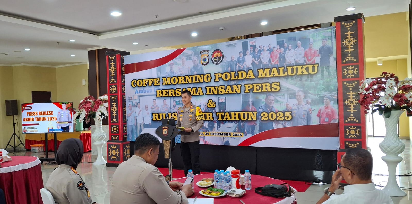 Hal itu disampaikan dalam rilis akhir tahun 2025 yang digelar bersama para pimpinan media dan insan pers di lobi lantai 1 Markas Polda Maluku, Tantui, Kota Ambon, Rabu (31/12/2025).