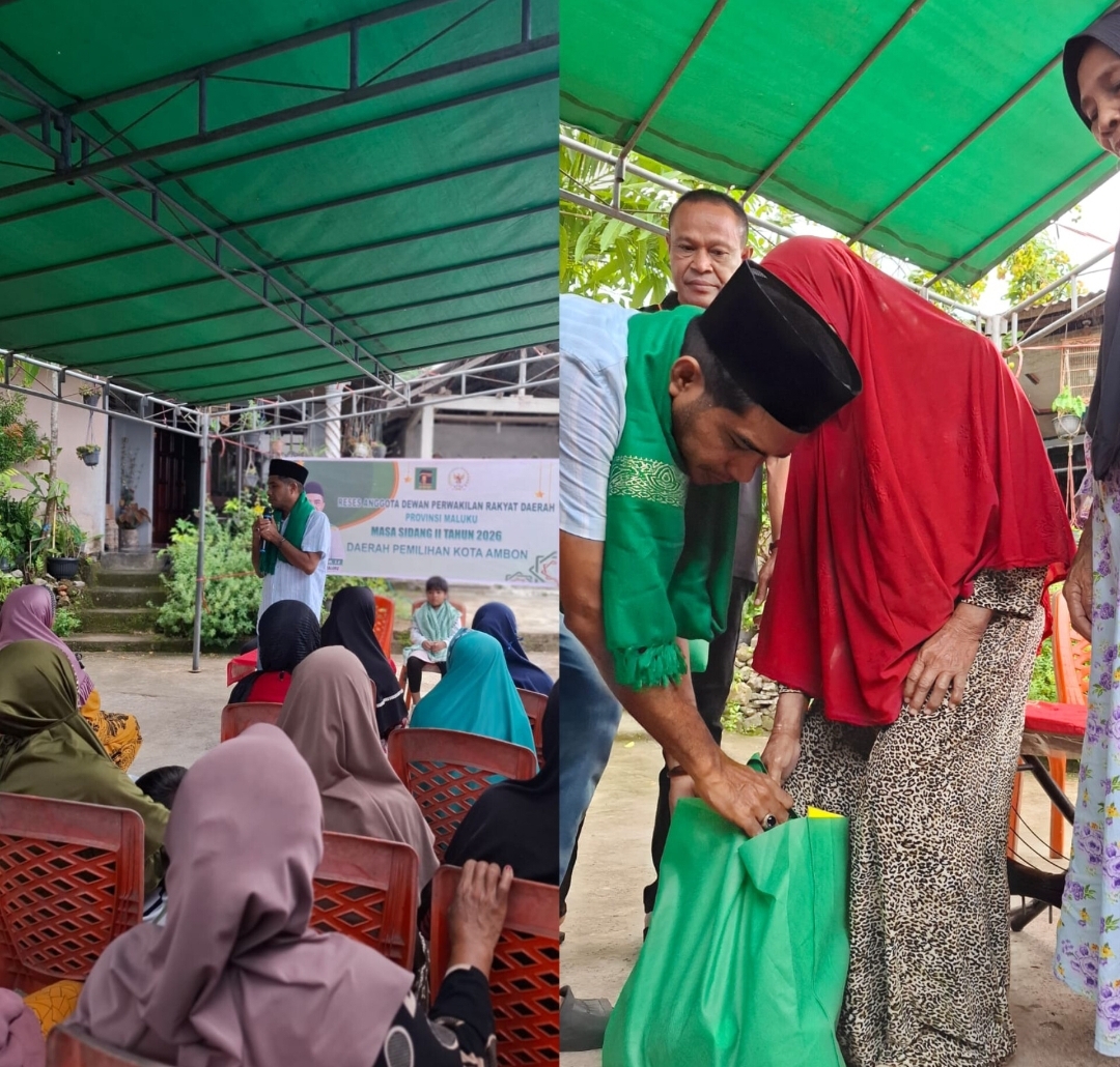 AMBONKITA.COM,- Anggota DPRD Provinsi Maluku, Rovik Akbar Afifudin melakukan reses dan membagikan 1350 paket sembako kepada para janda, lansia dan anak yatim di Kota Ambon.