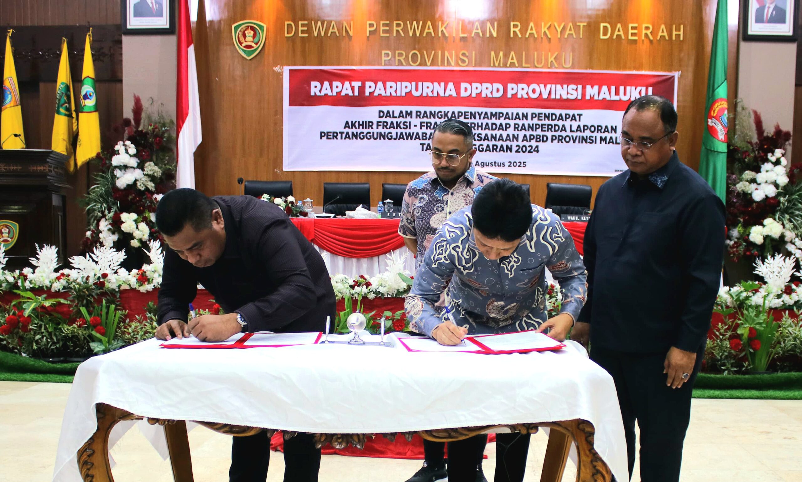 Sidang Paripurna dipimpin Ketua DPRD Maluku, Benhur George Watubun, didampingi wakil ketua Fauzan Rahawarin dan Johan Lewerissa. Hadir Sekretaris Daerah (Sekda) Maluku, Sadali Ie, para pimpinan OPD, dan unsur Forkopimda.