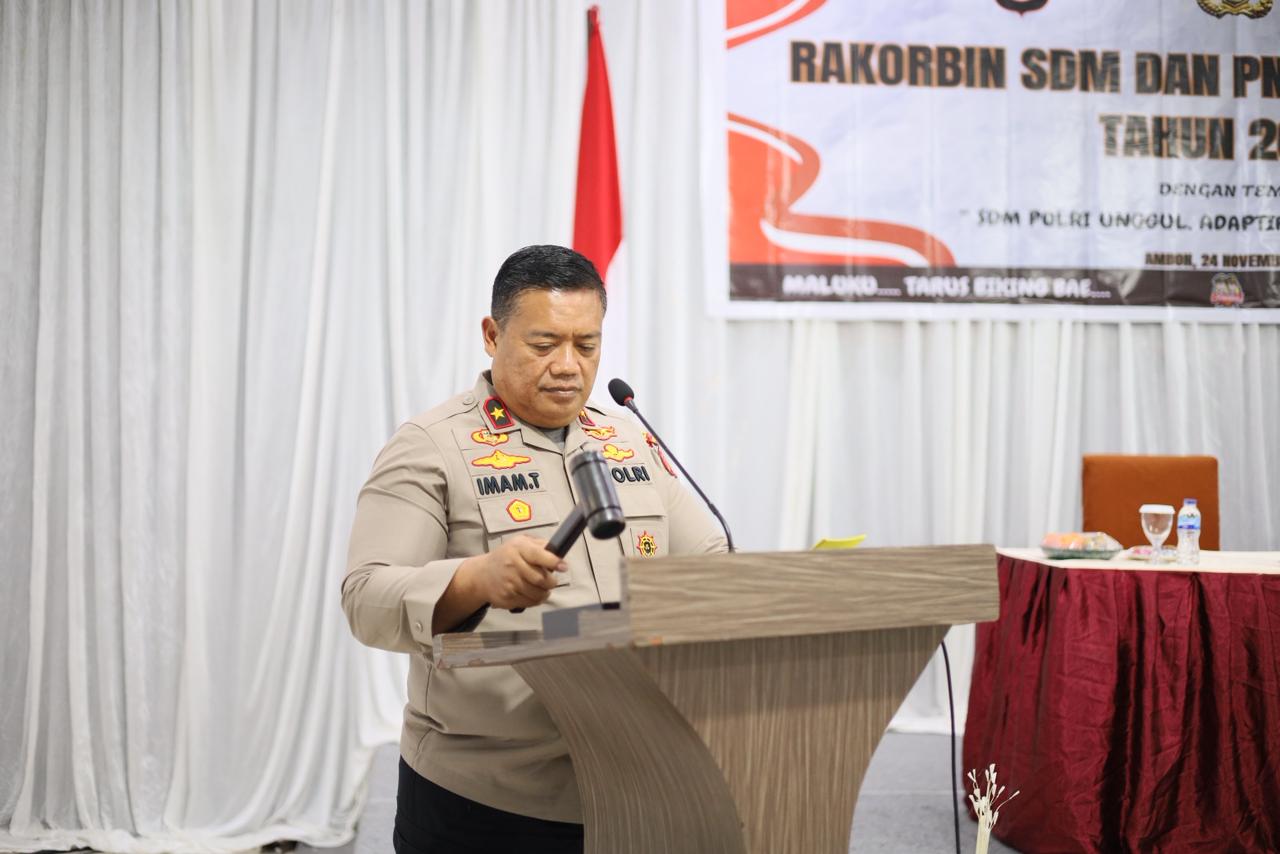 AMBONKITA.COM,– Wakil Kepala Kepolisian Daerah Maluku, Brigjen Pol Imam Thobroni, mendorong realisasi Sumber Daya Manusia (SDM) Polri  yang unggul, adaptif dan kolaboratif.